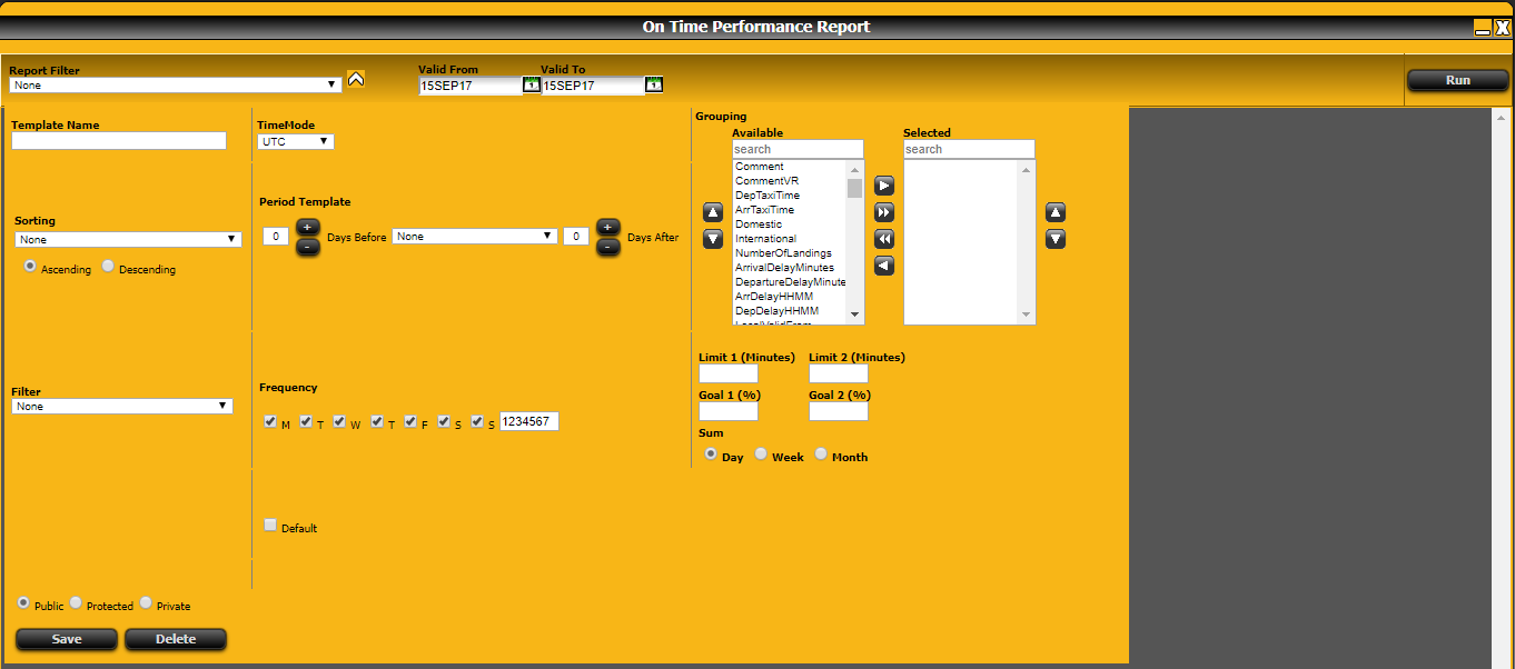 - Report filter: Choose a template that was saved previously from the dropdown list.