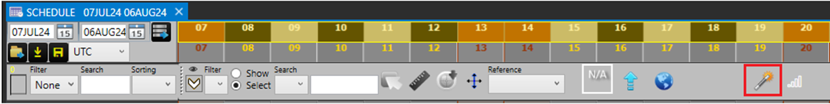 The wizard will work on the loaded flight schedule. The Aircraft Wizard is opened from the Schedule Gantt.
