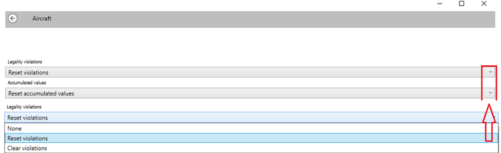 With this option, you can update the accumulated values for an aircraft. You will get to a window where you can select the aircraft and counter to be defined. Note: It may be initially empty.