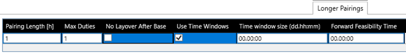 | Max Pairing Length | Maximum allowed pairing length from first departure time to last arrival time. Note: If the parameter to cover more than one day will increase the processing time dramatically. |