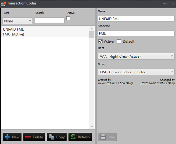 | Human Resource Filter (HRFI) | This is the specific crew group that the Transaction Code can be linked to. This is optional. |