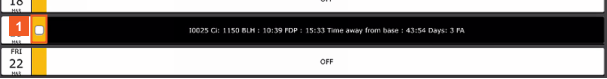This green block highlights all duties between the starting base and the ending base for the activity, and the duties that you are requesting to trade.