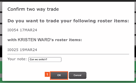 This confirms that you have sent a Duty Trade request to someone else. The other crewmember will now see it on their account.