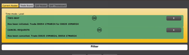 In this topic, you will learn how to request a trade for a rostered duty with another crewmember.